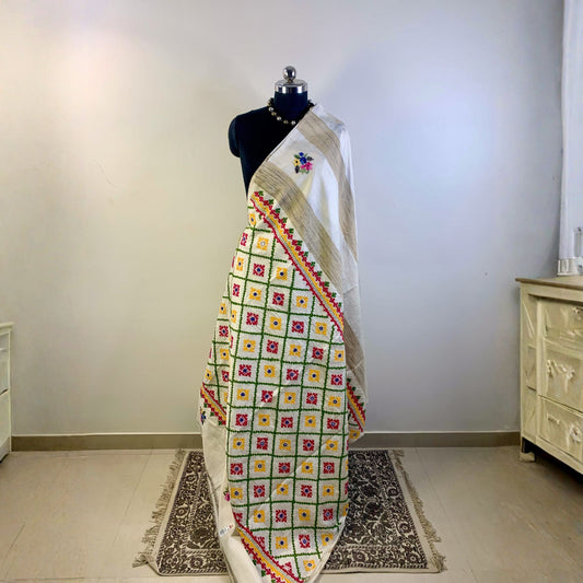 Tussar Silk Saree – Hand Embroidered Gujrati Stitch