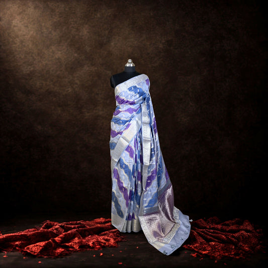 Purple & Blue Cotton Chanderi Rangkat Banarasi Saree