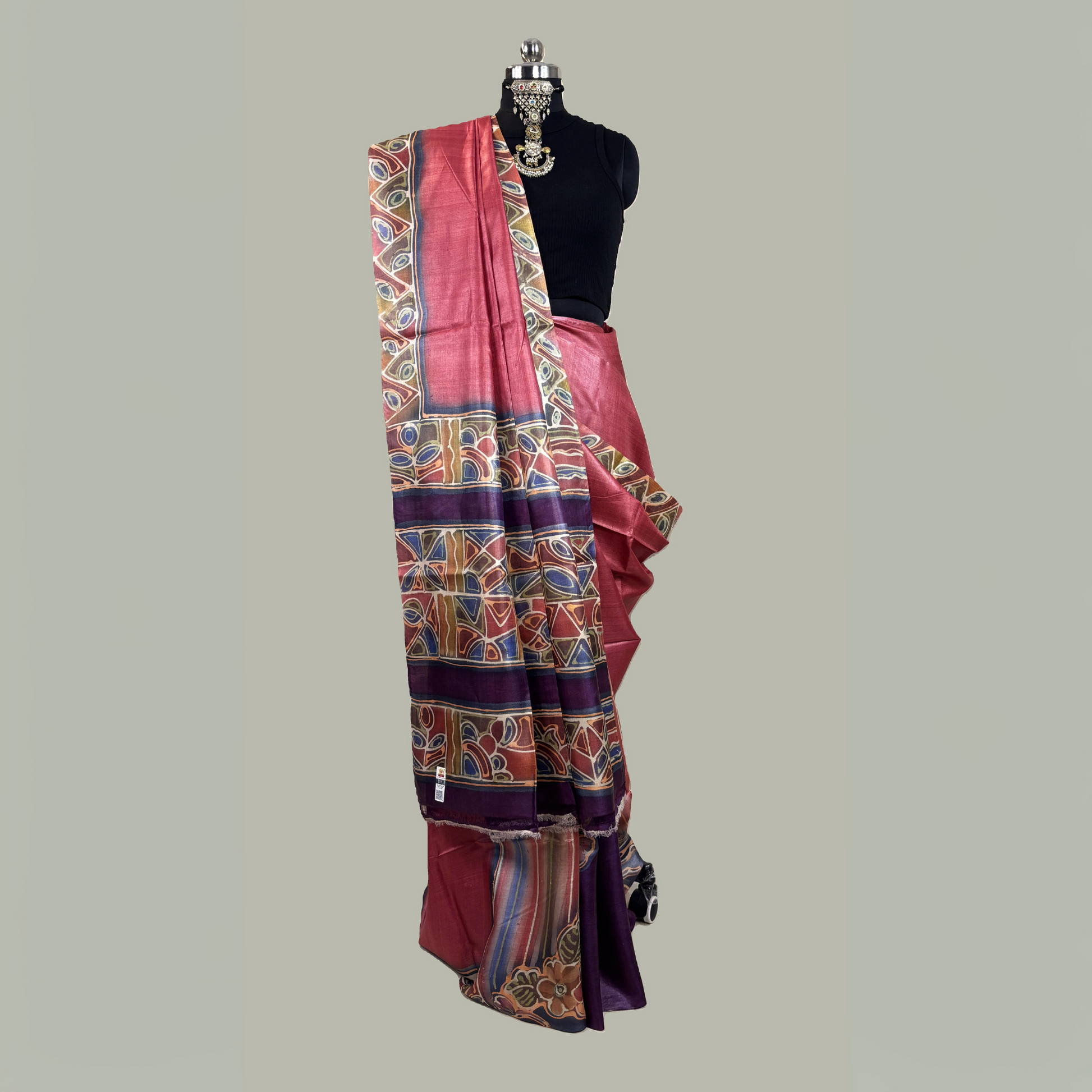 Alcohol Ink Painted Onion Peel Colour Tussar Saree