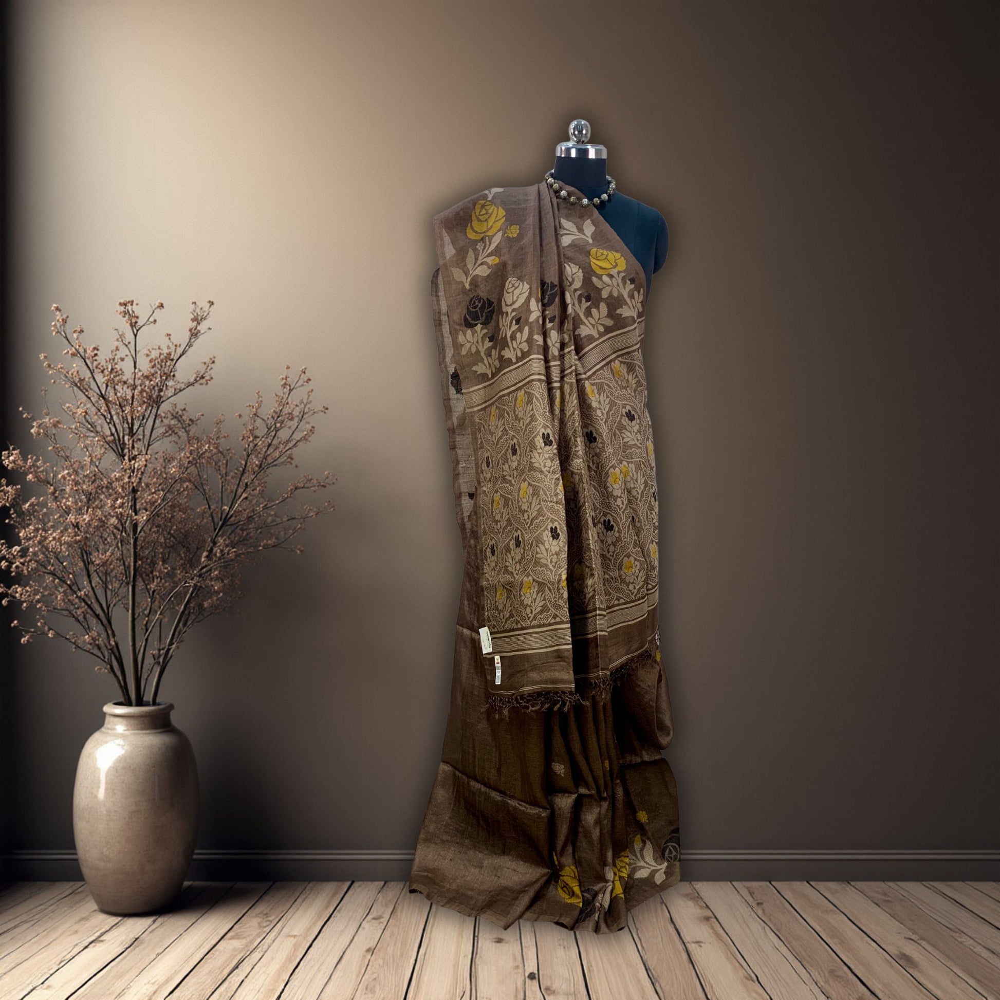 Brown Tussar Jamdani Saree