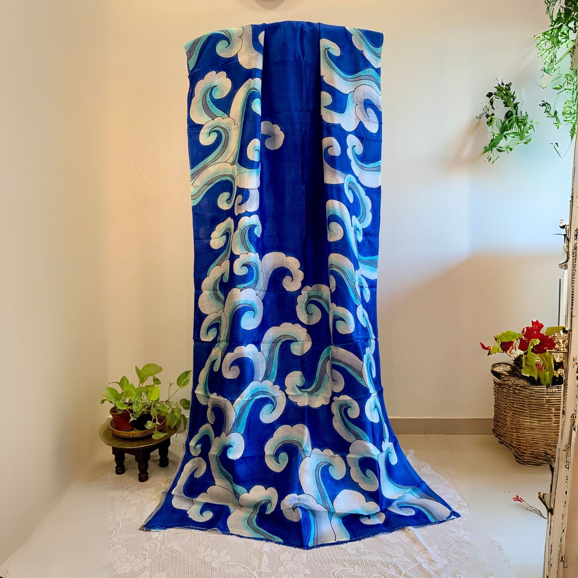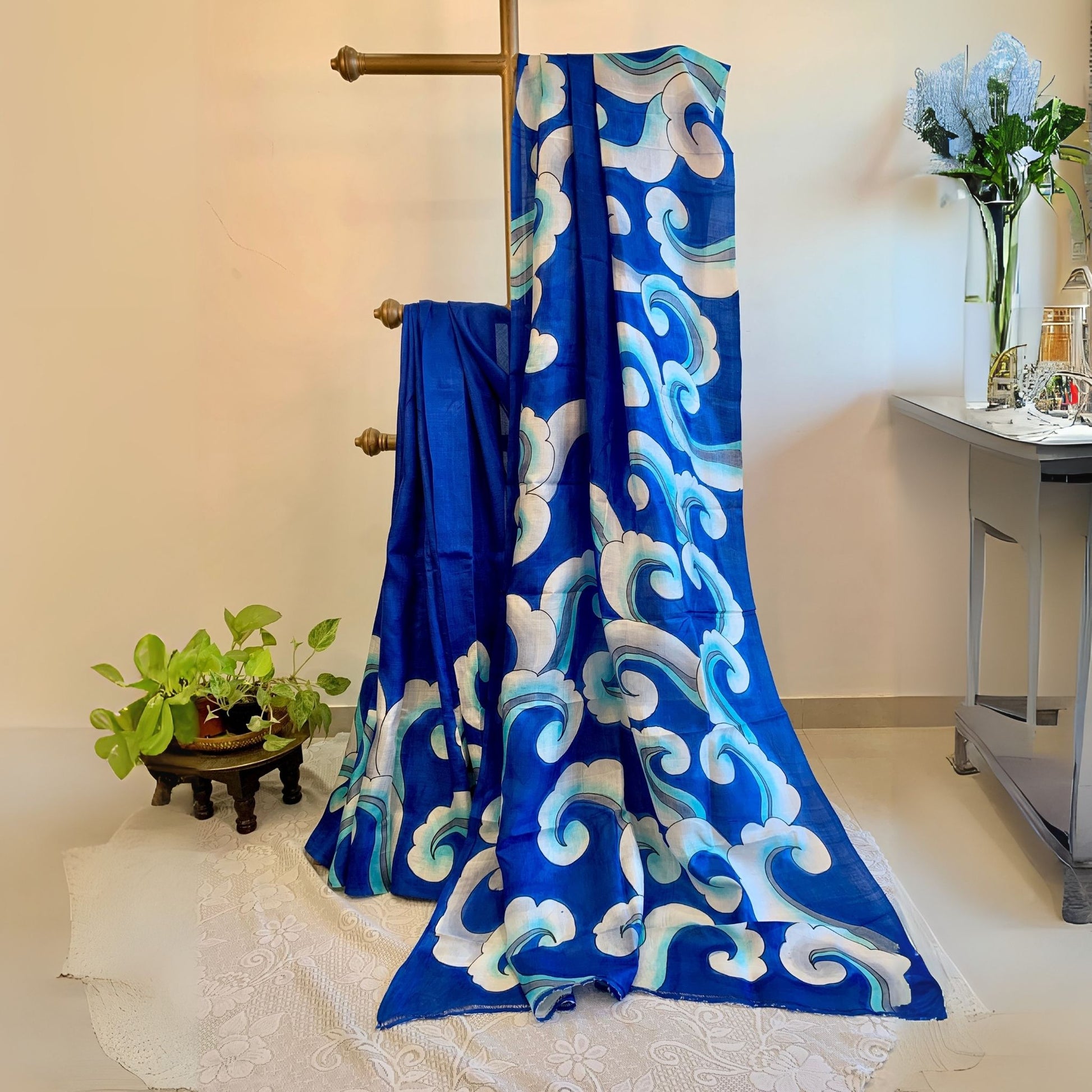 Color & Design: Expertly handcrafted in Murshidabad, this Blue Pure Silk saree features delicate hand painted motif on the borders and pallu. The bright Blue hue exudes charm and elegance, making it a perfect choice for any occasion. Elevate your wardrobe with this unique and timeless piece.