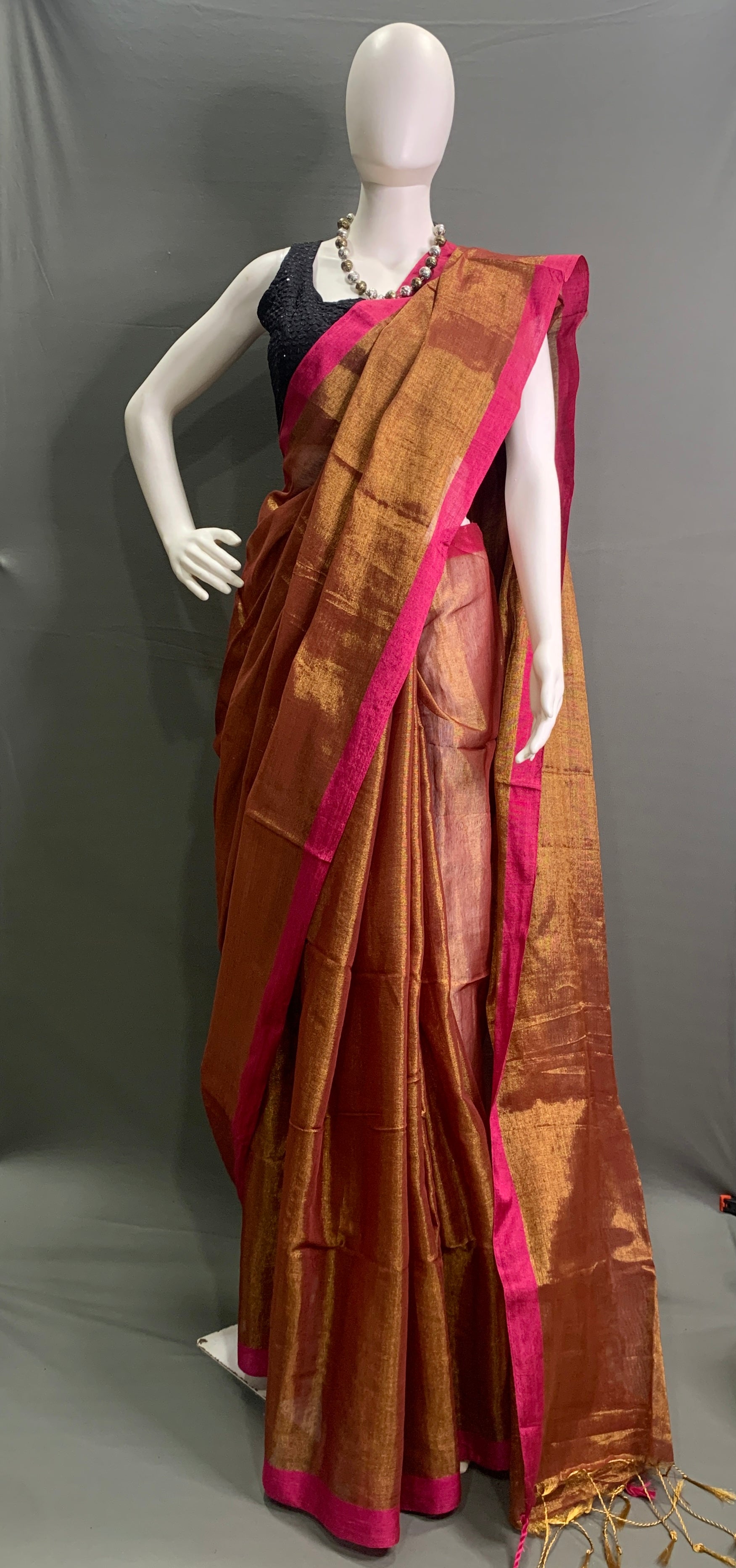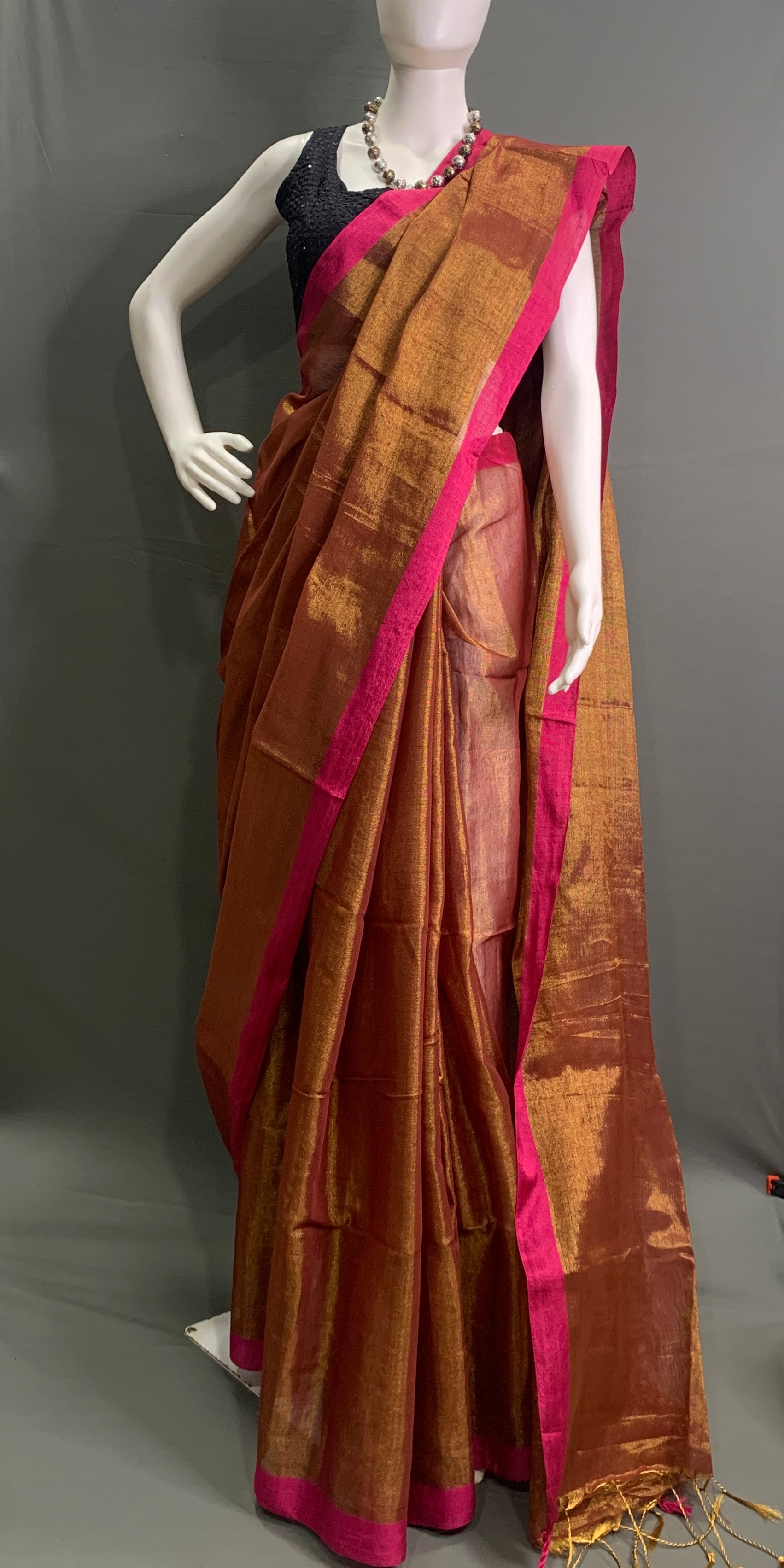 Rust Colour Linen Tissue Saree