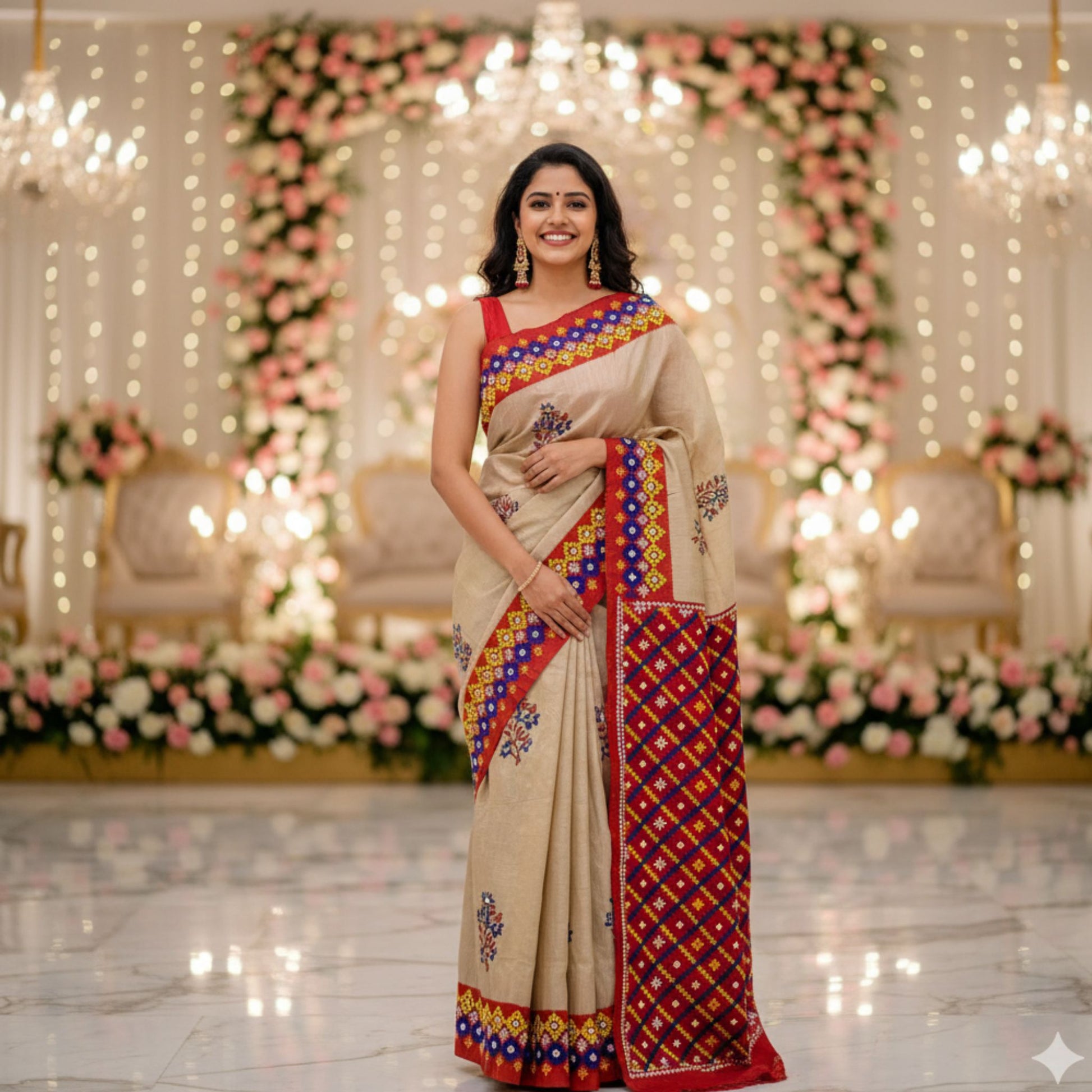 Tussar Silk Saree – Hand Embroidered Gujrati Stitch